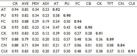 Notes: AVE: Average variance extracted; AT: Attitude; CB: Compatibility; MSV: Maximum shared variance; CN: Convenience; FC: Facilitating condition; CR: Composite reliability; CK: Cybersecurity knowledge; ASV: Average shared variance; PU: Perceived usefulness; TFT: Touch-free transactions; CUI: Continuous usage intention. Bold values represent the square root of the AVEs.
